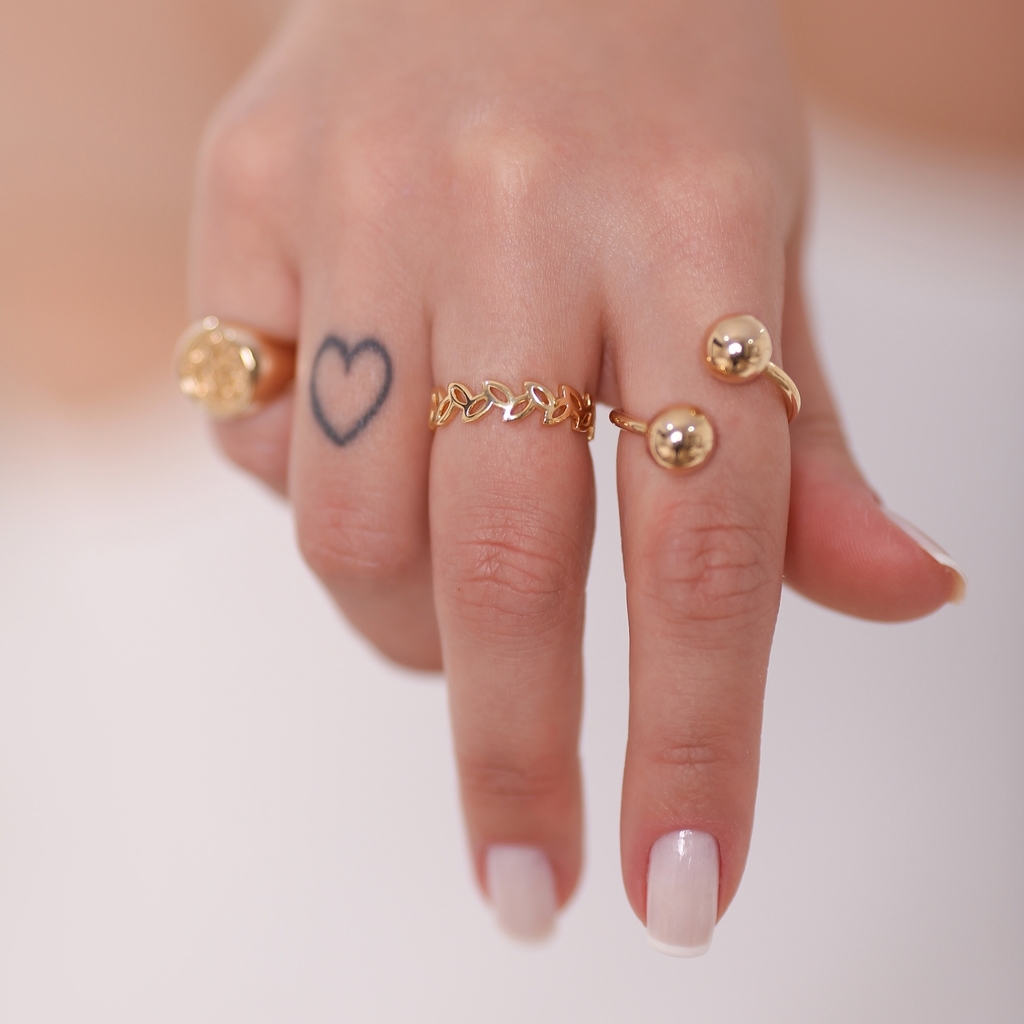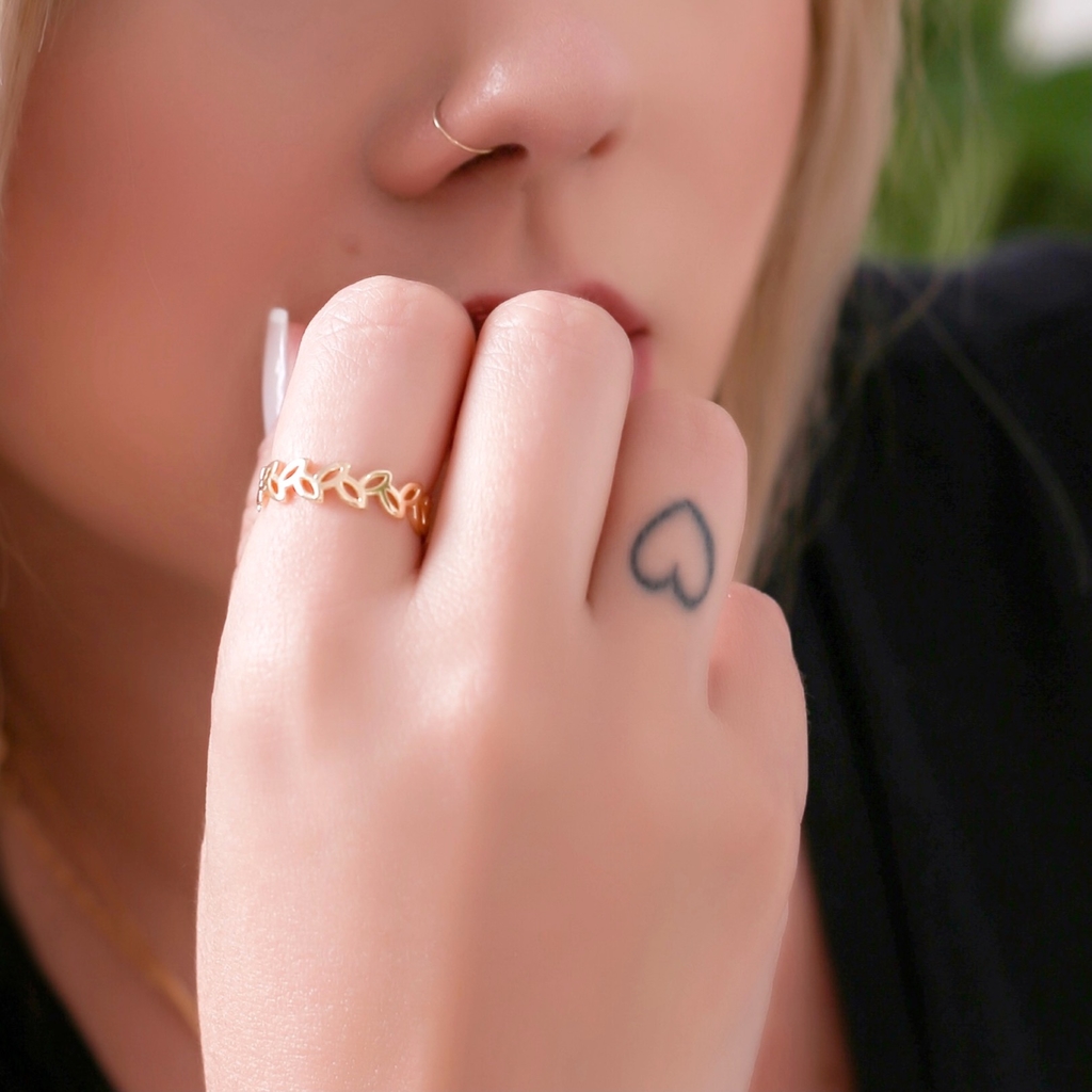 ANEL FOLHINHAS DUPLAS BANHADO A OURO