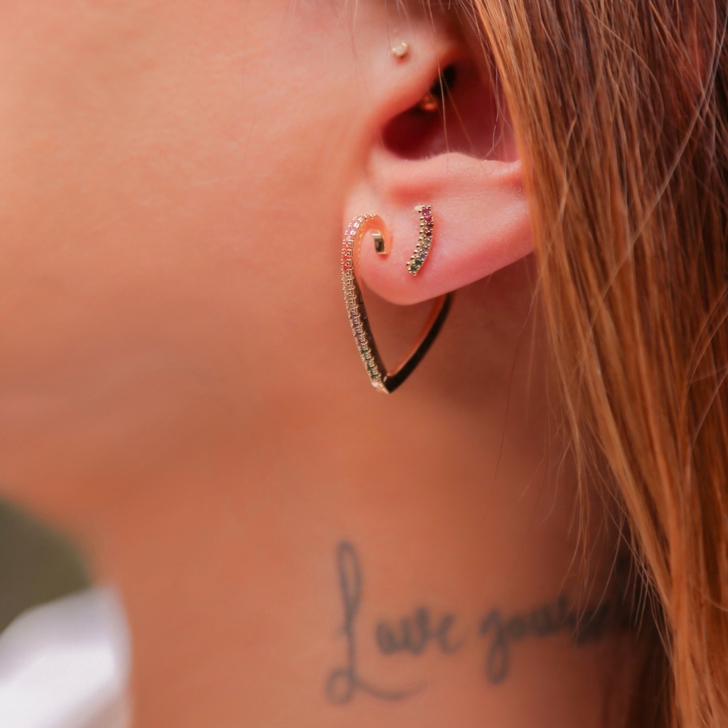 ARGOLA CORAÇÃO CRAVEJADA COLORS BANHADA A OURO