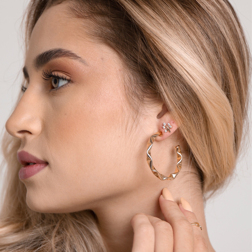 BRINCO MINI FOLHINHAS CRISTAL BANHADO A OURO