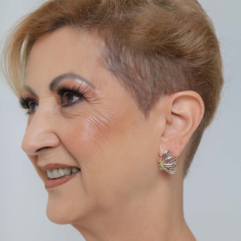 BRINCO NATURE BORBOLETA CRAVEJADA BANHADO A OURO