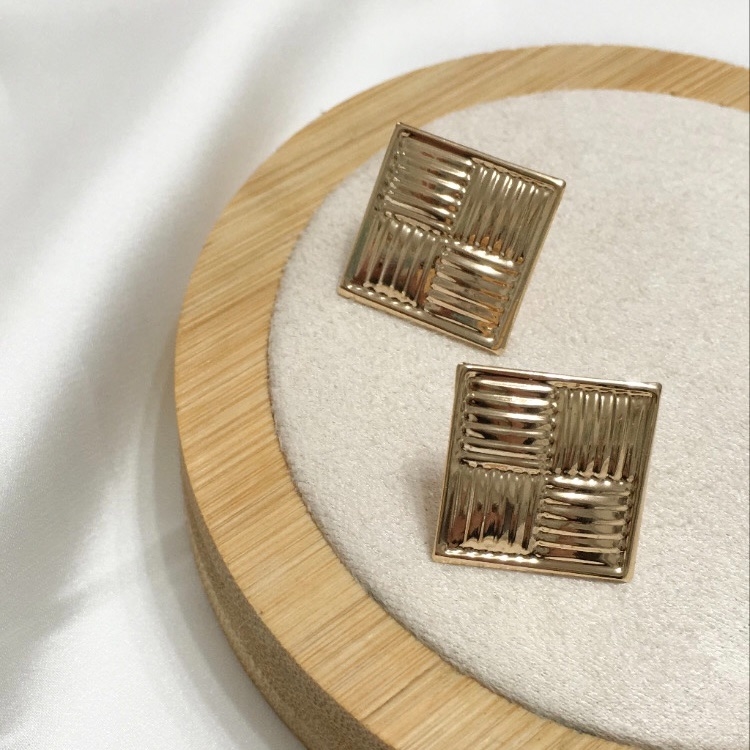 BRINCO BOTÃO QUADRADO TRABALHADO BANHADO A OURO
