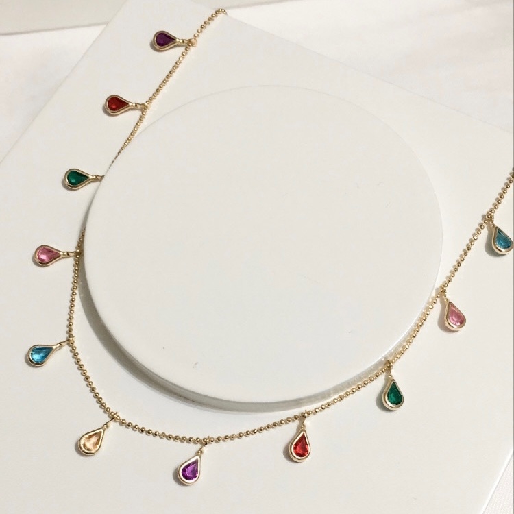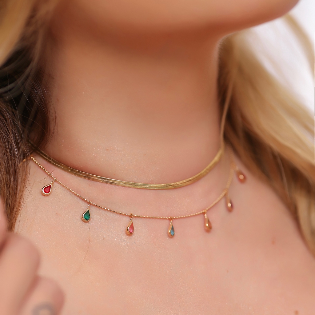 CHOKER GOTINHAS PENDURADAS COLORS BANHADA A OURO