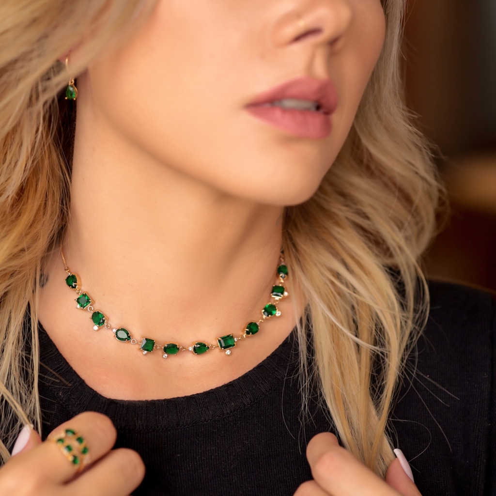 CHOKER LUXO EMERALD BANHADO A OURO