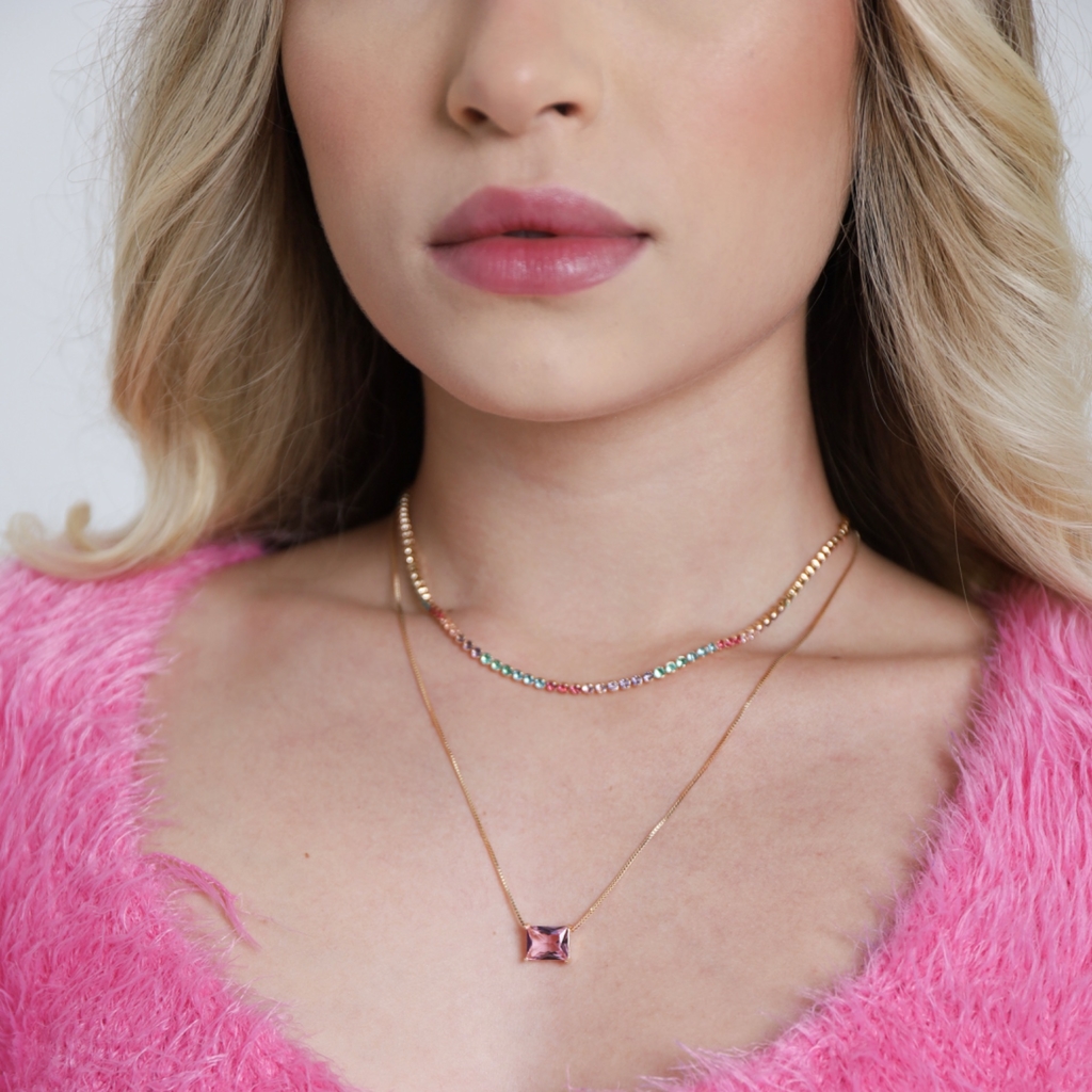 CHOKER RIVIERA CHATON 2,5MM COLORS BANHADA A OURO