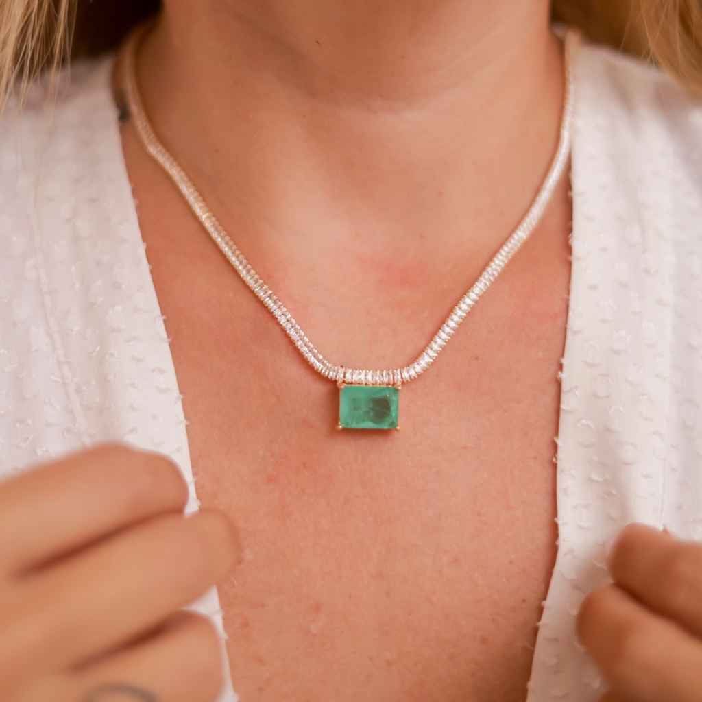 CHOKER RIVIERA MINI BAGUETES OCTOGONO TURMALINA COLOMBIANA BANHADA A OURO