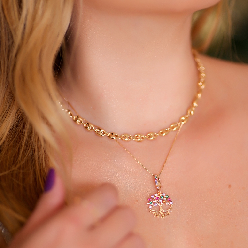 COLAR ÁRVORE DA VIDA CRAVEJADA COLORS BANHADA A OURO