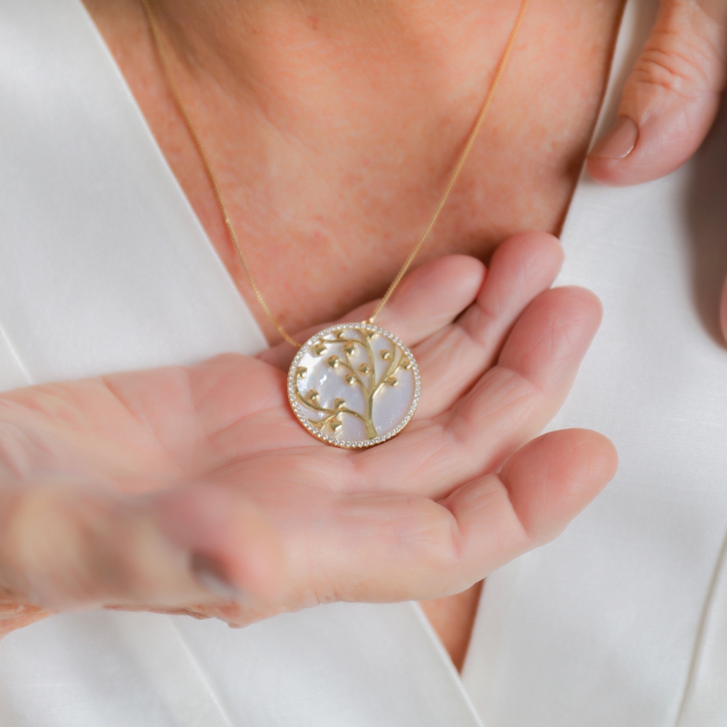 COLAR ARVORE DA VIDA MADREPÉROLA BANHADO A OURO