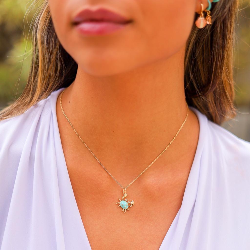 COLAR CARANGUEJO VERDE PISCINA BANHADO A OURO
