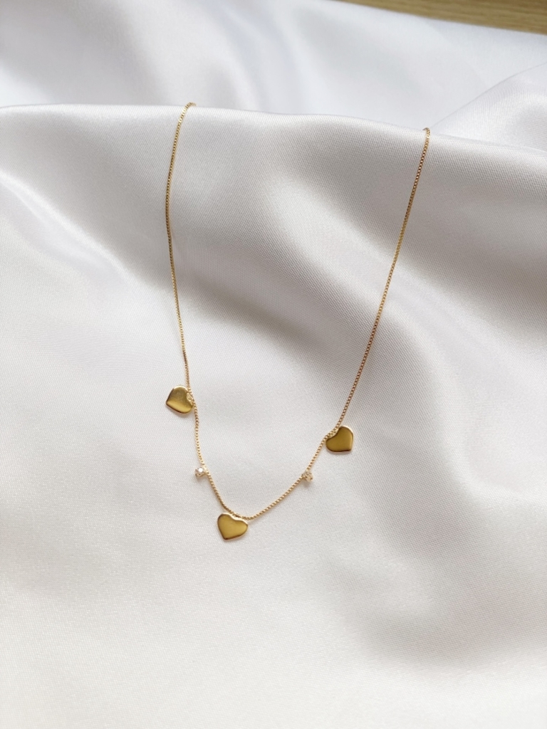 COLAR CORAÇÕES PONTO DE LUZ BANHADO A OURO