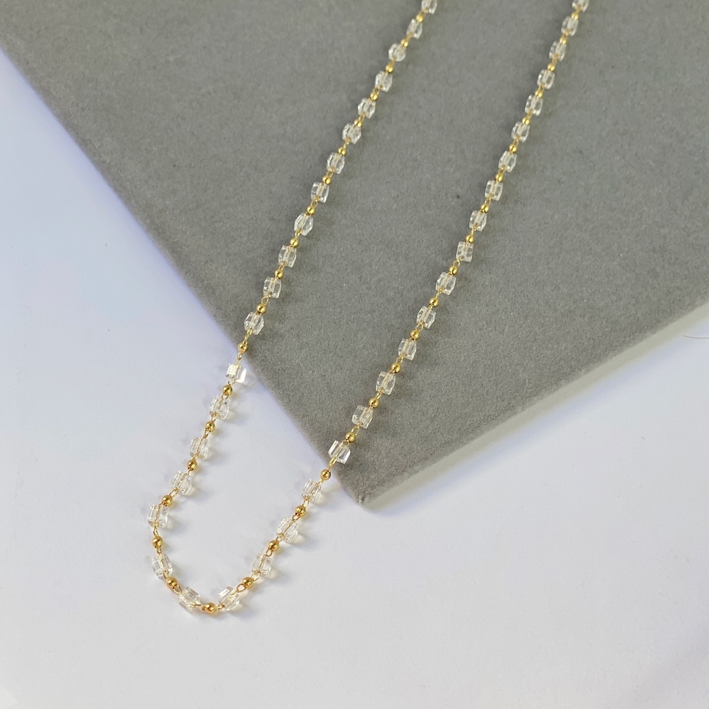 COLAR LONGO CRISTAIS 80CM BANHADO A OURO