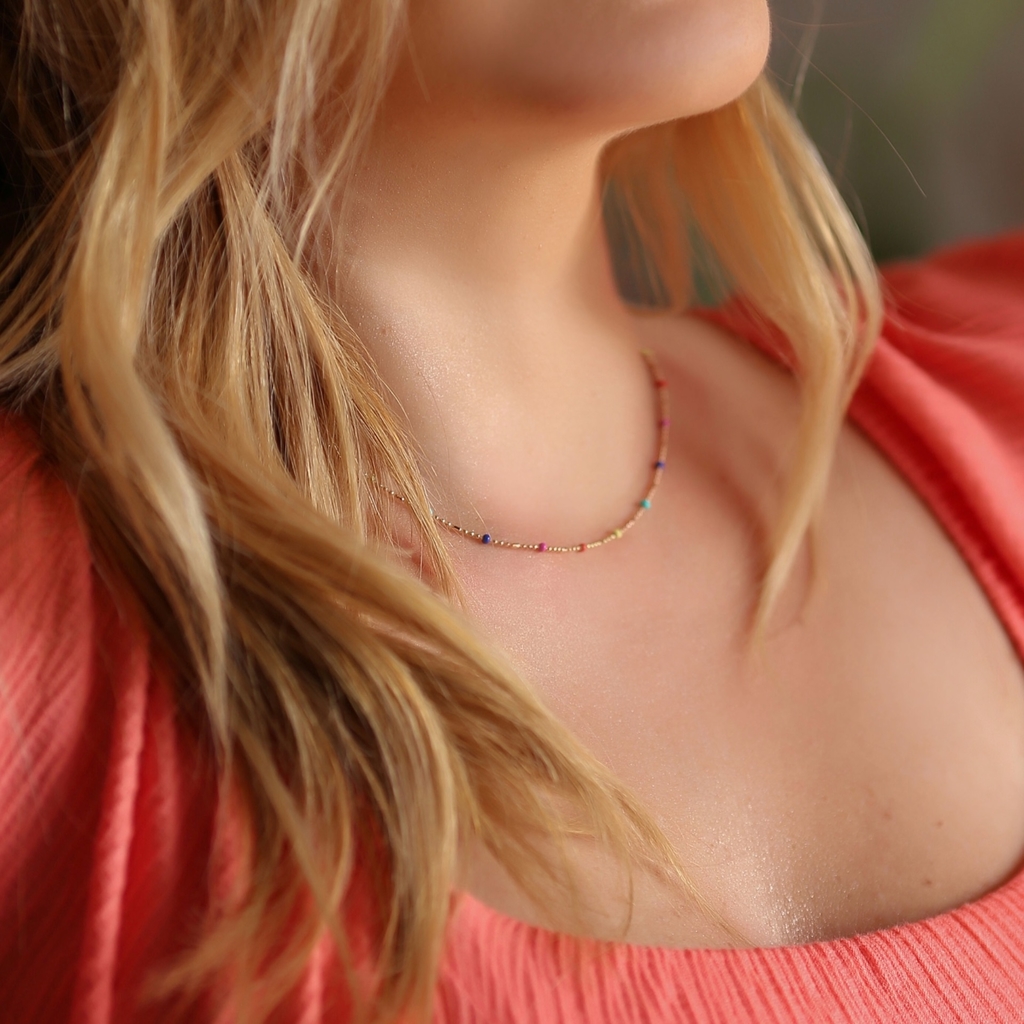 COLAR MINI BOLINHAS COLORIDAS BANHADO A OURO