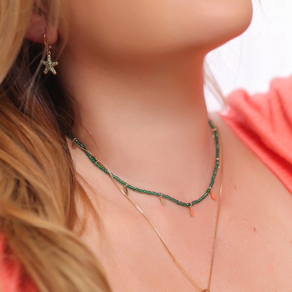 COLAR MINI CRISTAIS VERDE BANHADO A OURO