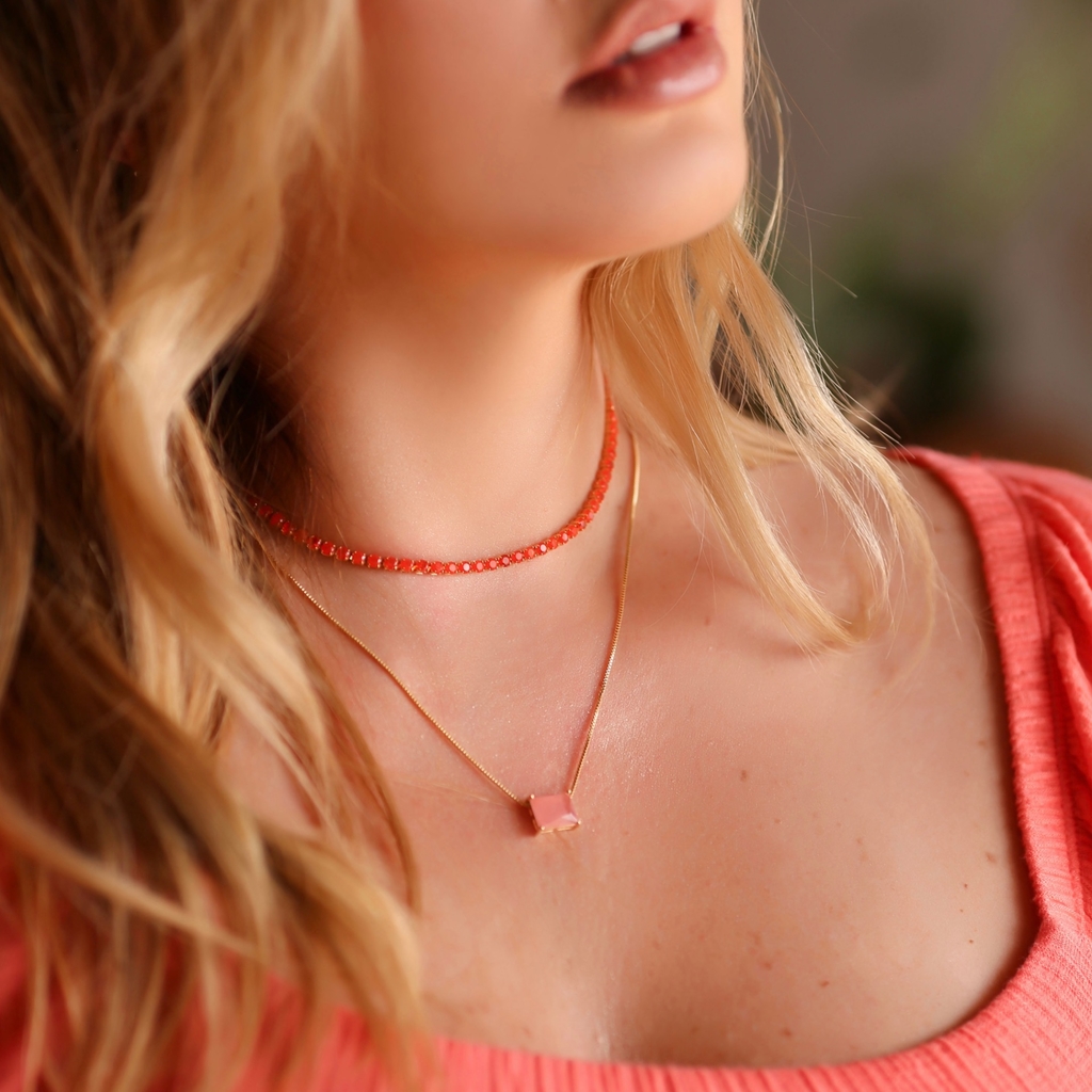 COLAR OCTOGONO 10x8MM MORGANITA BANHADO A OURO