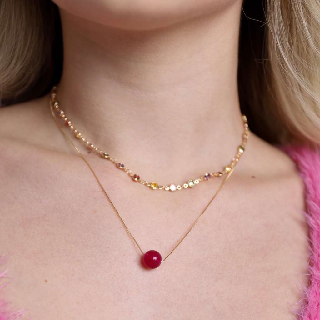 COLAR PEDRA MURANO PINK 40CM BANHADO A OURO