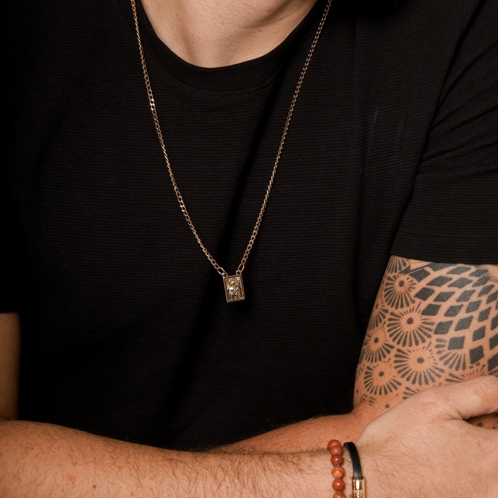 ESCAPULÁRIO JESUS CRISTO E AVE MARIA NO DOURADO EM AÇO