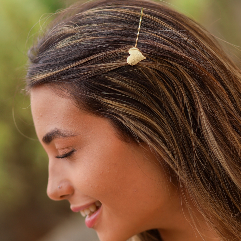 PRESILHA DE CABELO CORAÇÃO FOSCO BANHADA A OURO