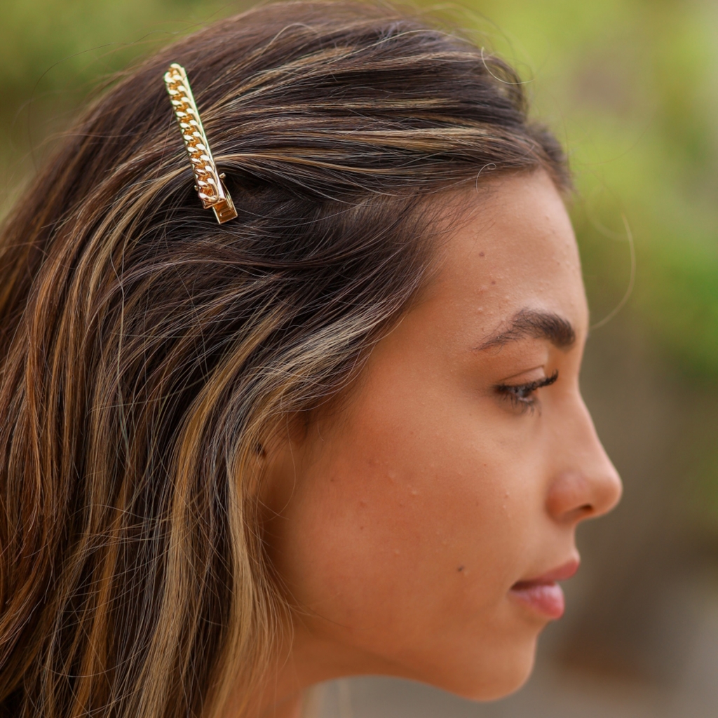 PRESILHA DE CABELO CORRENTARIA GRUMET BANHADA A OURO