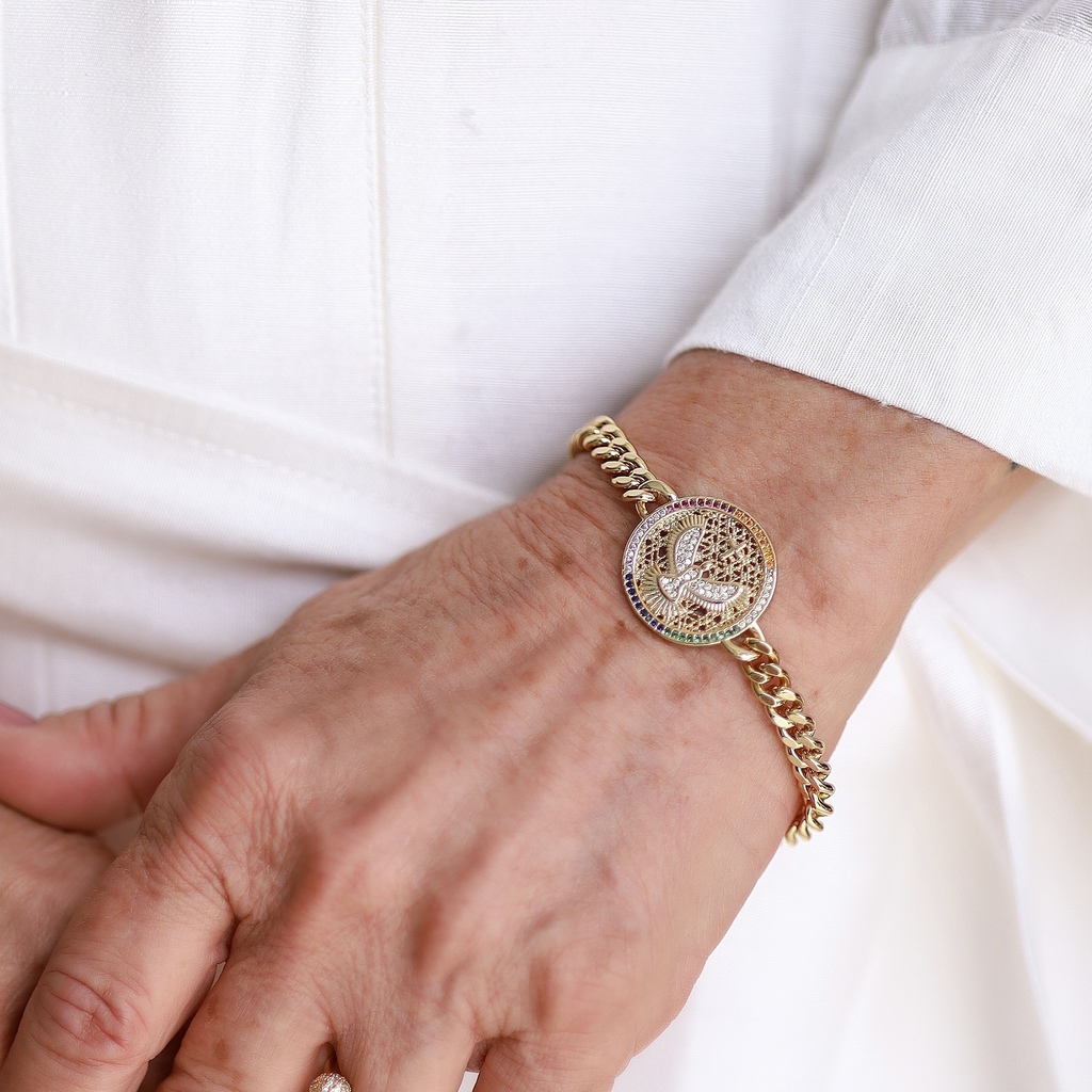 PULSEIRA GROSSA MEDALHA ESPÍRITO SANTO BANHADA A OURO