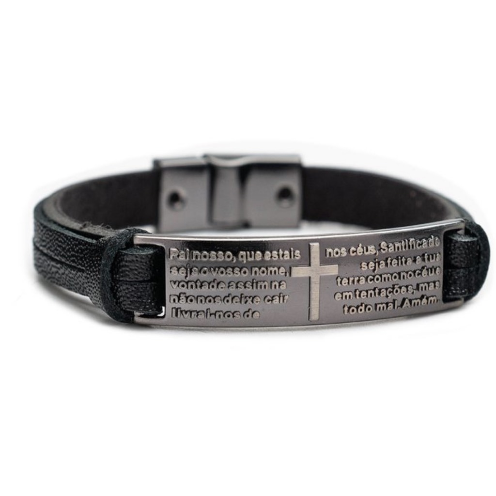 PULSEIRA PAI NOSSO BLACK EM COURO