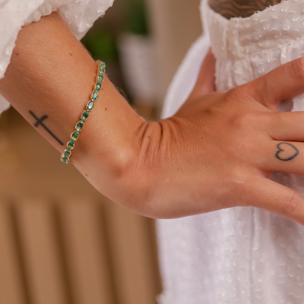 PULSEIRA RIVIERA OVAL TURMALINA PARAIBA BANHADA A OURO