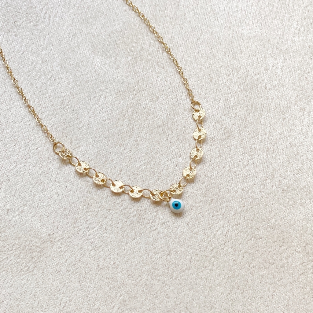 TORNOZELEIRA MEDALHINHAS OLHO GREGO BANHADA A OURO